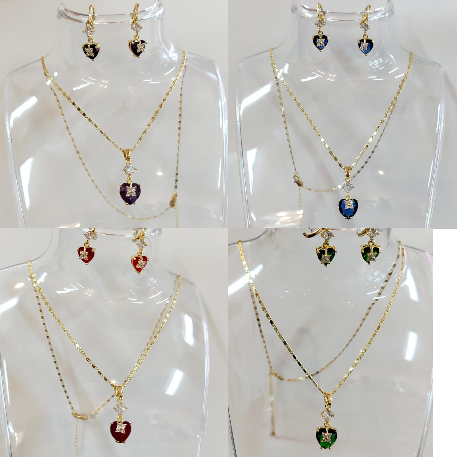 COLLAR DE CORAZON PIEDRAS CIRCONIAS CON ARETES YA INCLJUIDOS